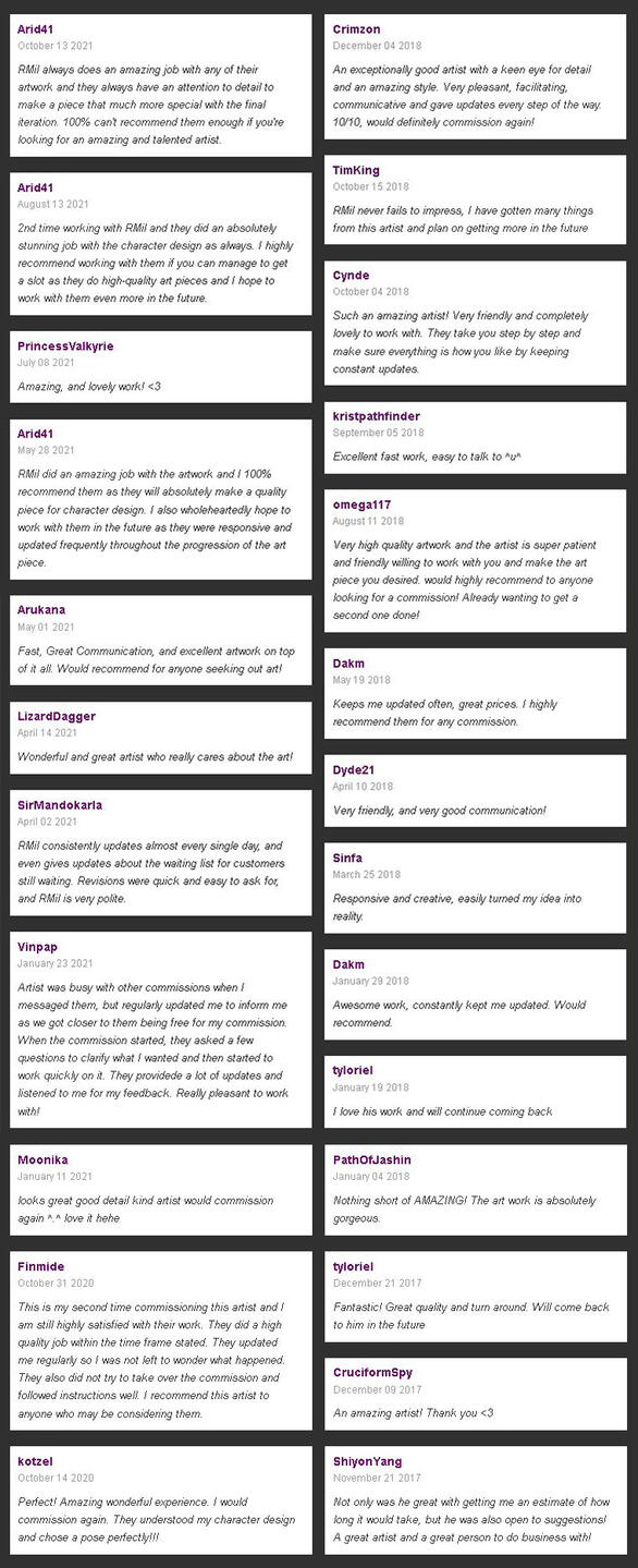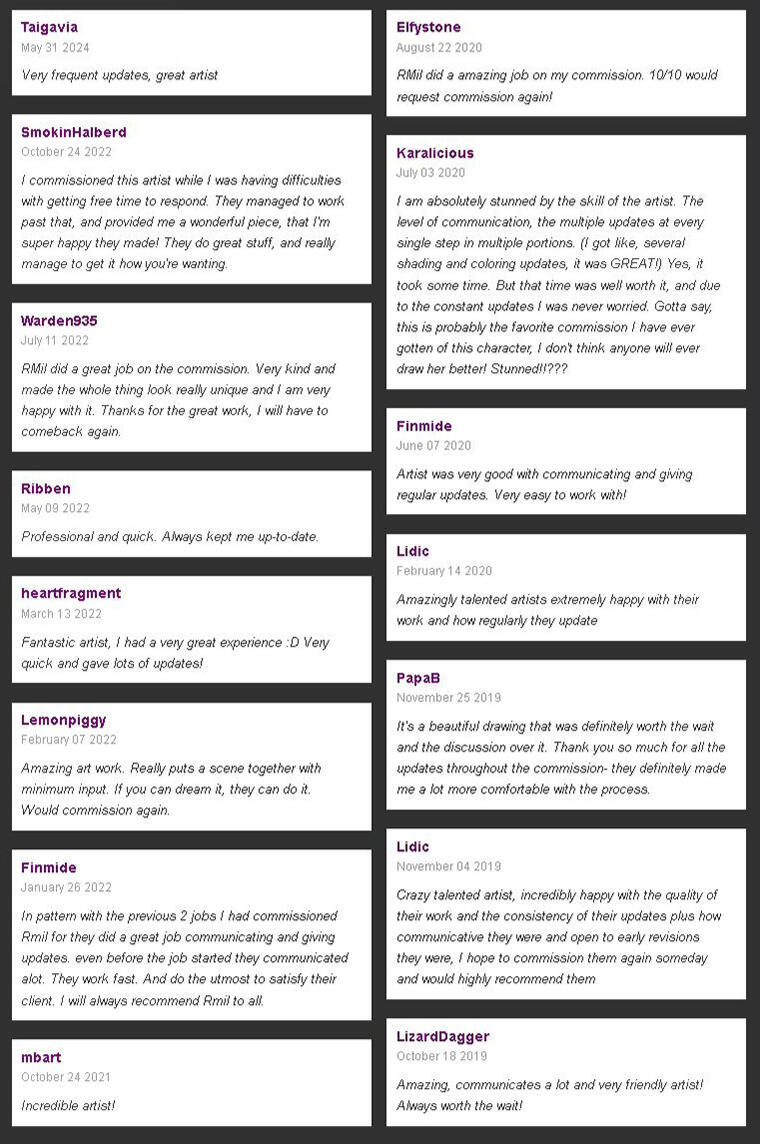 All Client's reviews are from https://artistsnclients.com/people/RMil